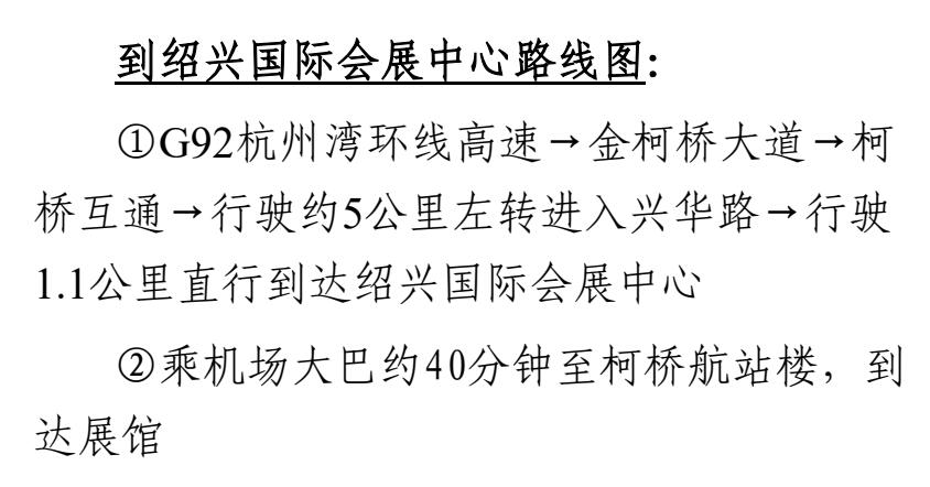 地點:紹興國際會展中心(浙江省紹興市柯橋區(qū)金柯橋大道以東,柯袍線以南,鏡水路以西,綢緞路以北)
